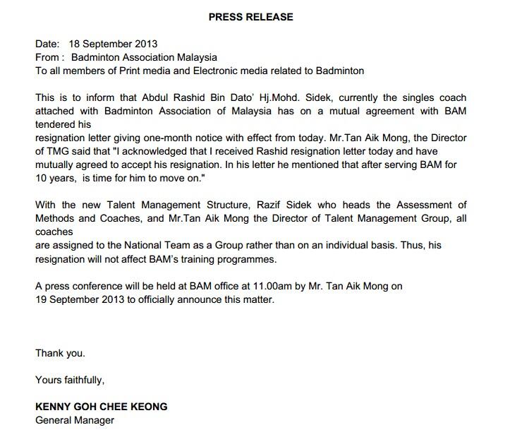 BAM's Talent Management Group director Tan Aik Mong confirmed Rashid's resignation as per his statement in the press release by BAM above.